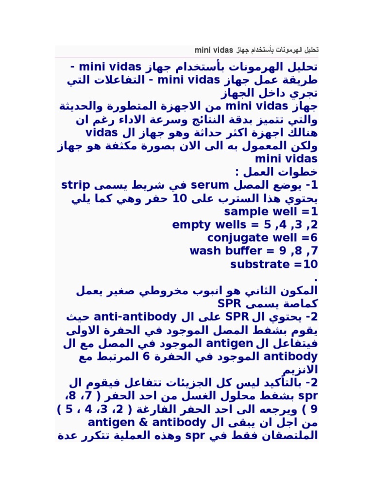 معلومات طبية تحليل الهرمونات بأستخدام جهاز Mini Vidas فيسبوك